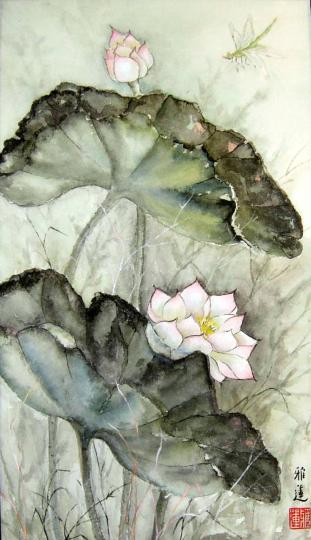| After retiring from many years of teaching Fine Arts in secondary schools, I was delighted to discover the refreshing world of Chinese Brush Painting. It was inspiring to learn the traditional techniques and philosophies of the ancient art. Chinese Brush Painting presents variety in all aspects of painting, and I love the direct quality of the brushwork. The use of unique papers and the intricacies of mounting the finished paintings add challenges, which always provide interest and a feeling of accomplishment when completed |
