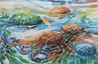 Miriam's early years of semi-rural surroundings in New Zealand fostered her love of art, music, dance and nature. Colours, forms, moods and movement constantly inspire her. As she developed artistically she came to believe that music-making is integral to her visual art. |